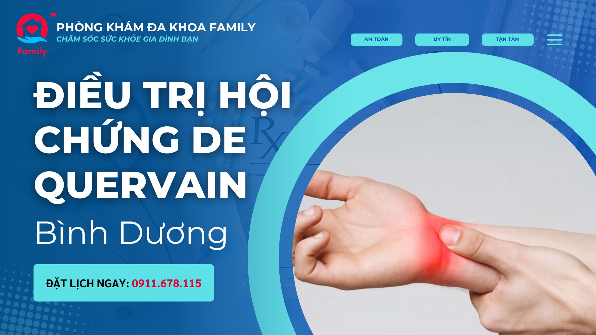 Nếu bạn đang tìm kiếm địa chỉ uy tín và phương pháp hiệu quả để điều trị hội chứng De Quervain Bình Dương, bài viết này sẽ cung cấp một hướng dẫn chi tiết từ cách nhận biết, chẩn đoán, đến các giải pháp điều trị tiên tiến nhất đang được áp dụng tại Phòng khám Đa khoa Family.